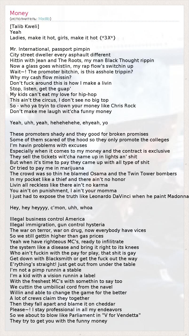А как ты думаешь, о чем песня "Money" ?