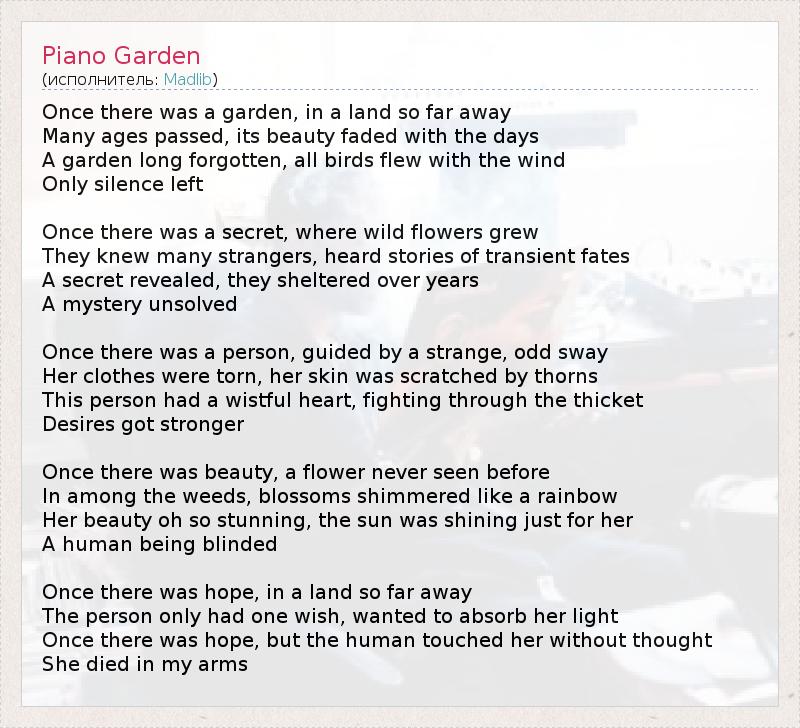 А как ты думаешь, о чем песня "Piano Garden" ?
