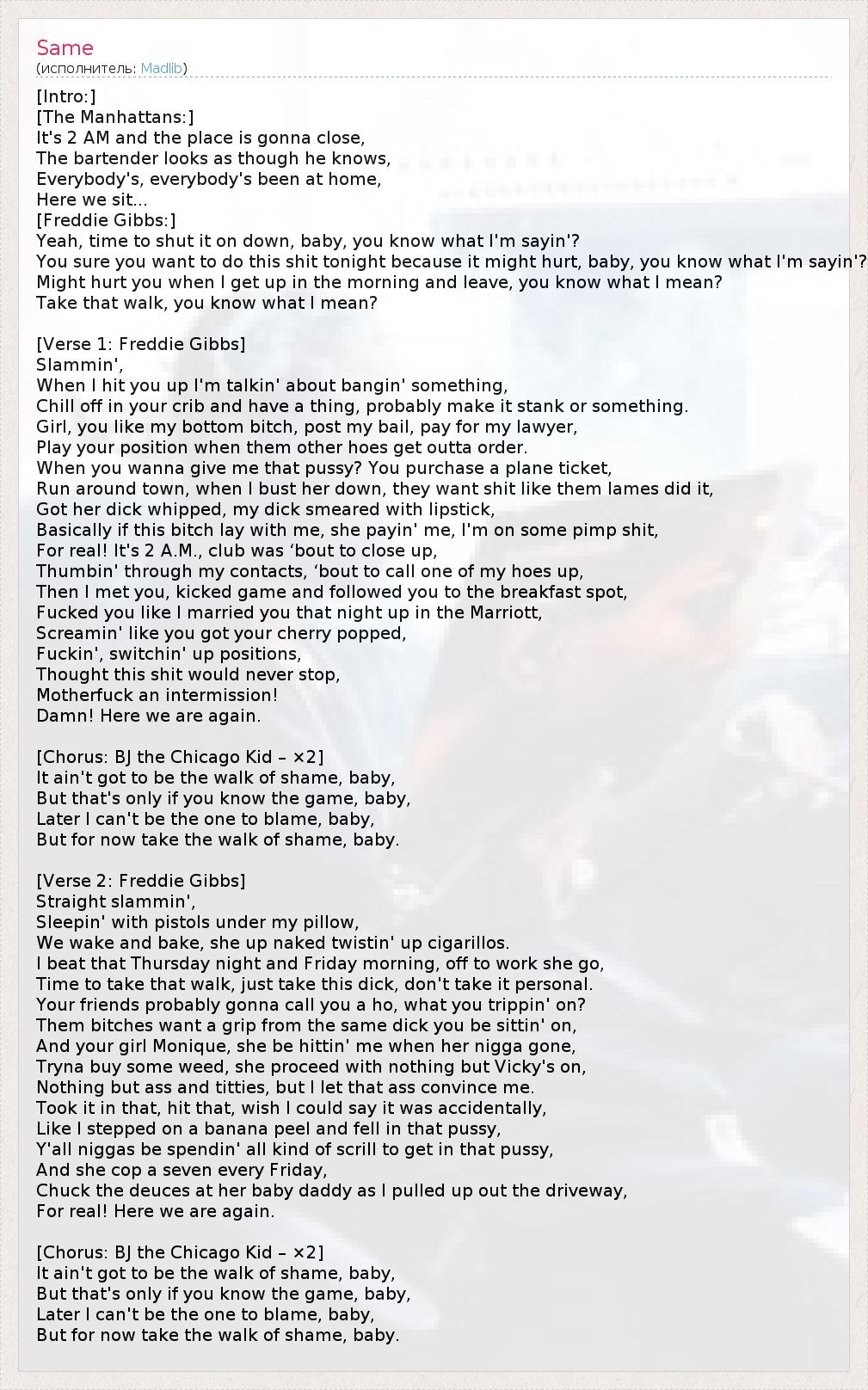 Это интересно:У него много имен, под которыми он издаётся (и лишь одно настоящее - Otis Jackson Jr.). Настоящие любители андеграунда знают, Madlib - парень непростой.Рождённый в г.Окснард, штат Калифорния (Oxnard, CA) сын певца R&B 60-х Отиса Джексона старшего (Otis Jackson Sr.), Madlib своим репертуаром игнорирует простую классификацию. Его первым проектом была широко известная в узких... продолжение
