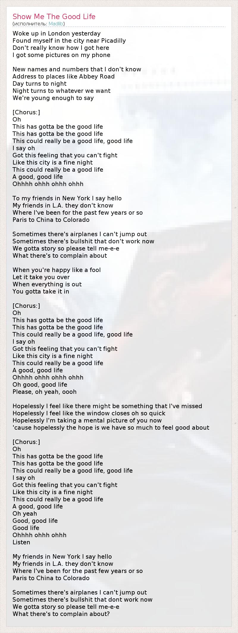 А как ты думаешь, о чем песня "Show Me The Good Life" ?