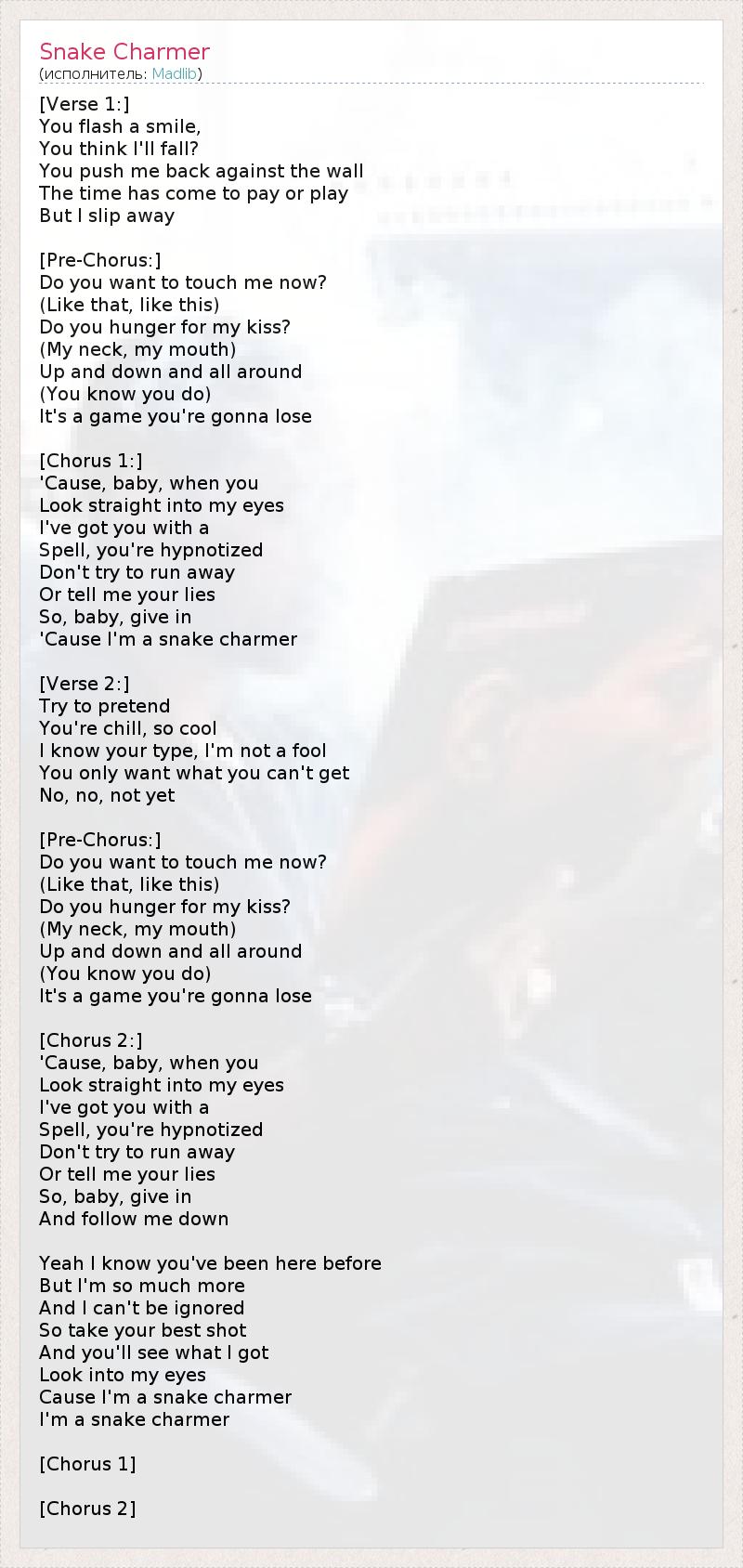 А как ты думаешь, о чем песня "Snake Charmer" ?