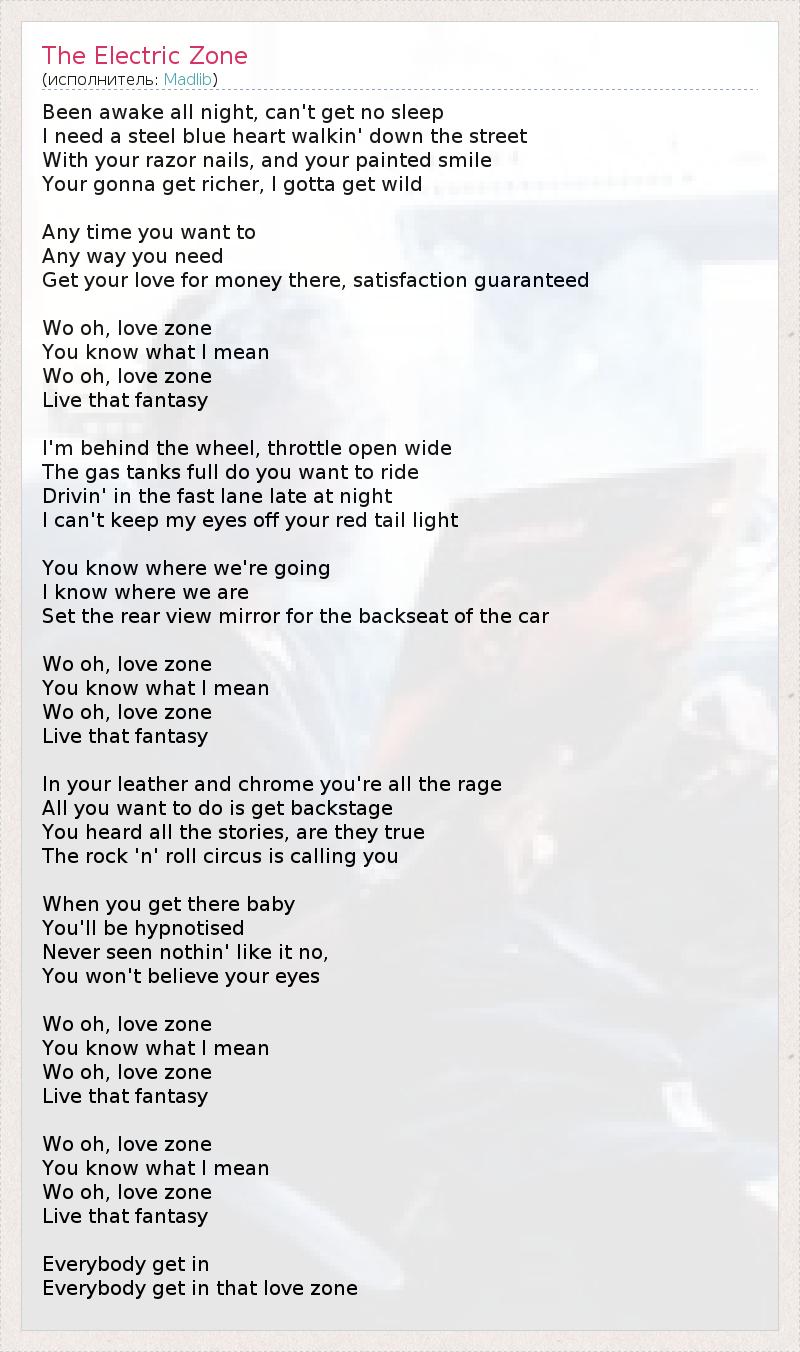 А как ты думаешь, о чем песня "The Electric Zone" ?