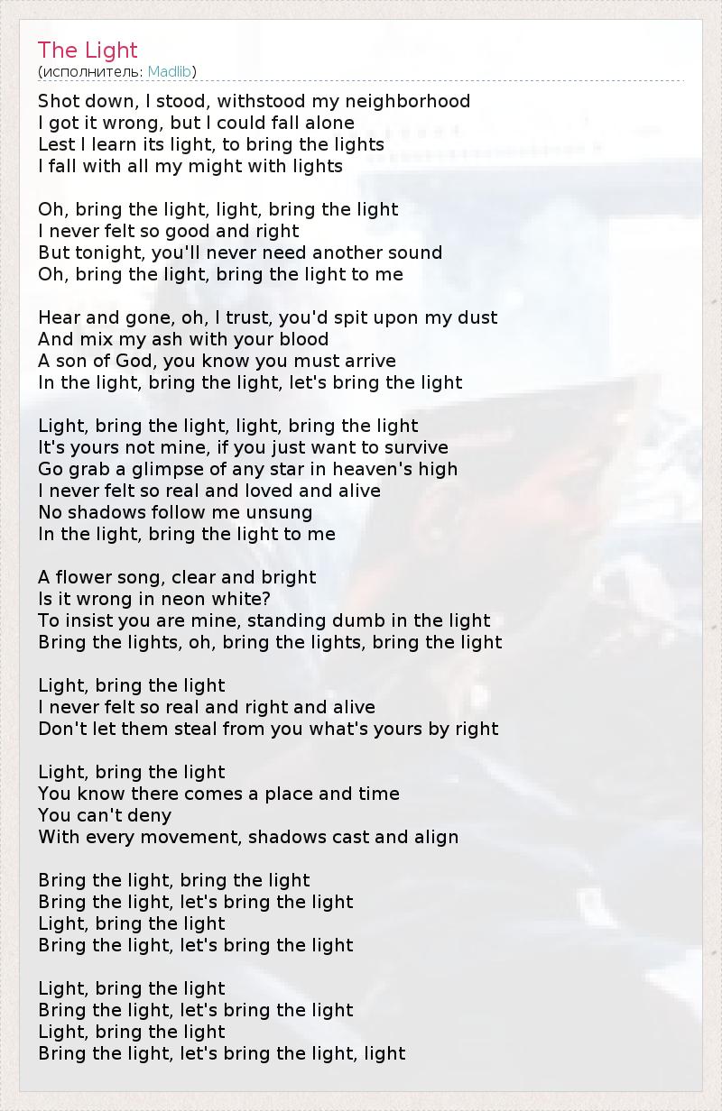 Bring the lights, oh, bring the lights, bring the light