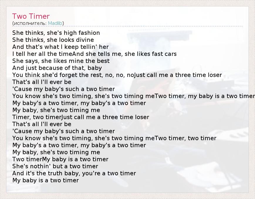 А как ты думаешь, о чем песня "Two Timer" ?