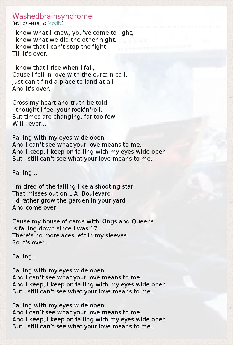 И я продолжаю, я продолжаю падать с широко открытыми глазами,