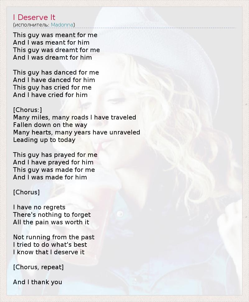 А как ты думаешь, о чем песня "I Deserve It" ?