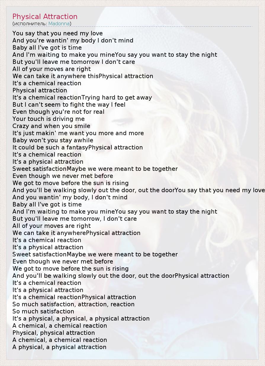 А как ты думаешь, о чем песня "Physical Attraction" ?
