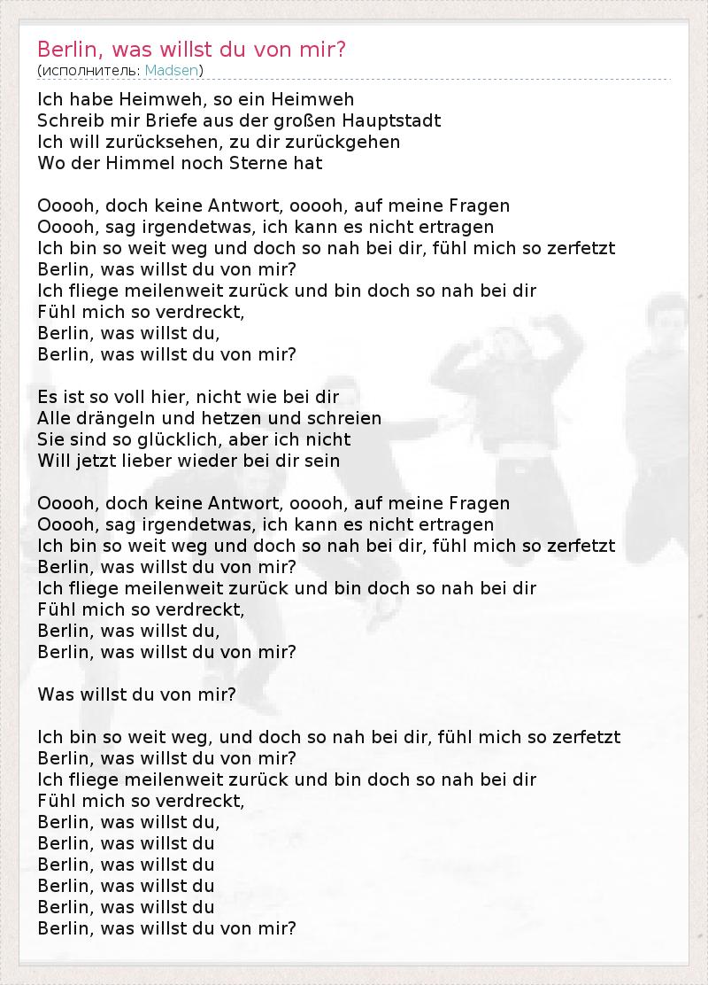 А как ты думаешь, о чем песня "Berlin, was willst du von mir?" ?