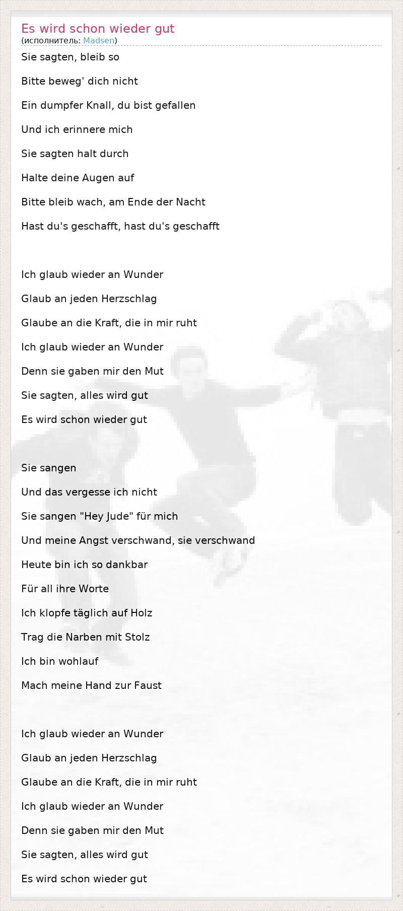 А как ты думаешь, о чем песня "Es wird schon wieder gut" ?