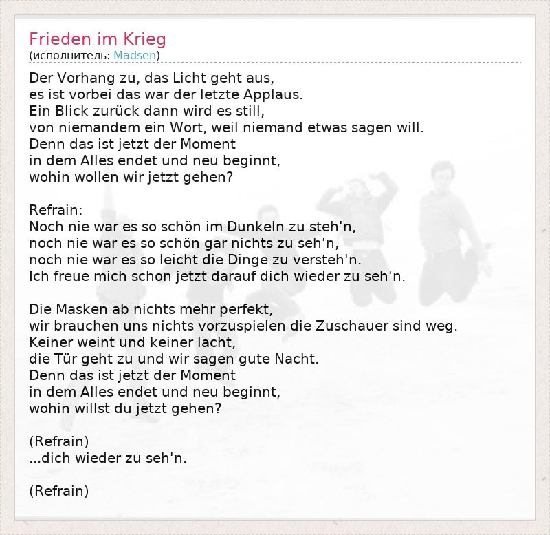 А как ты думаешь, о чем песня "Frieden im Krieg" ?