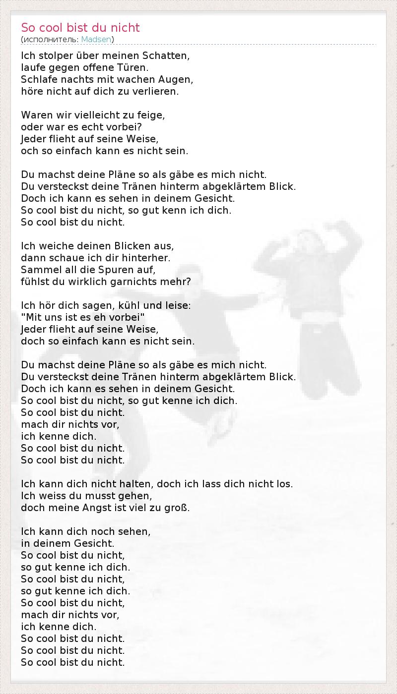 А как ты думаешь, о чем песня "So cool bist du nicht" ?