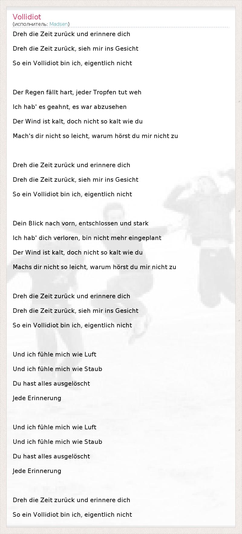 А как ты думаешь, о чем песня "Vollidiot" ?