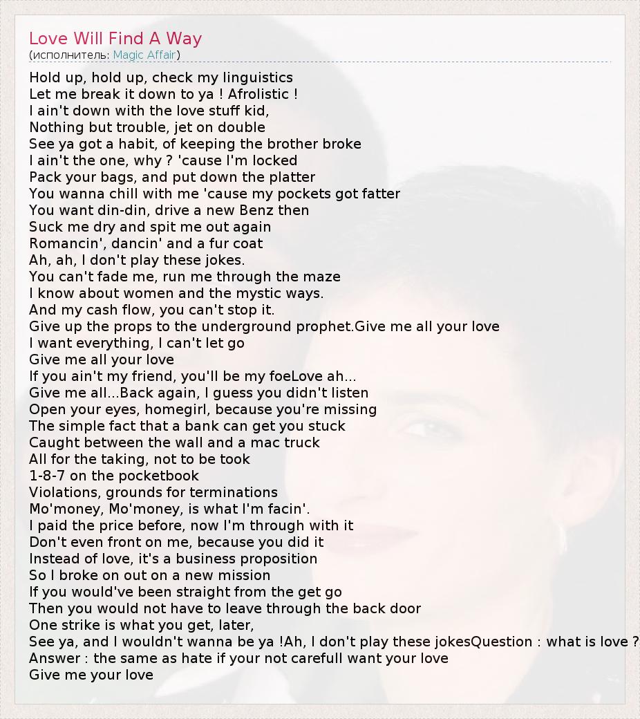 А как ты думаешь, о чем песня "Love Will Find A Way" ?
