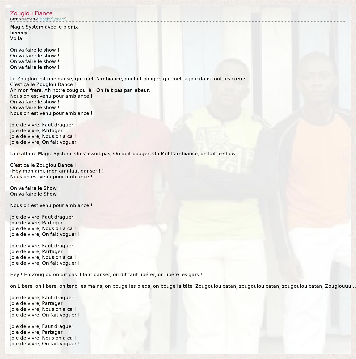 А как ты думаешь, о чем песня "Zouglou Dance" ?
