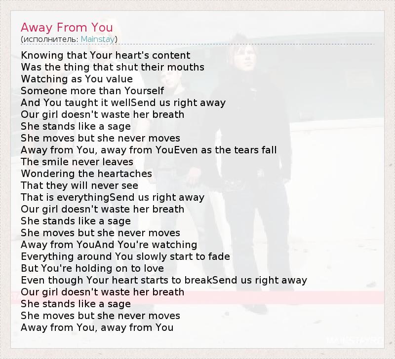 Это интересно:Mainstay is a melodic rock band from Minneapolis, Minnesota. The band was formed in 2003 and is signed to BEC Recordings. While a lot of the band's music has decidedly Christian lyrics and messages, their music appeals to a large secular fanbase as well. Their music style has been compared to Copeland, Kutless, Sanctus Real, Lifehouse and The Goo Goo Dolls. Their debut album, Well Meaning Fiction, was released on February 21, 2006.
