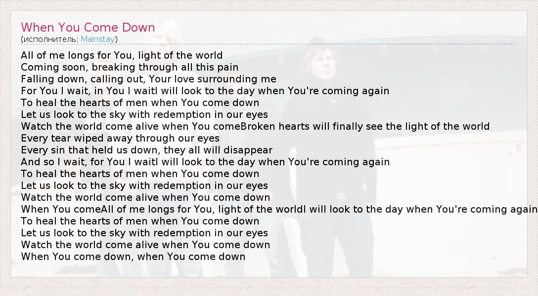 А как ты думаешь, о чем песня "When You Come Down" ?