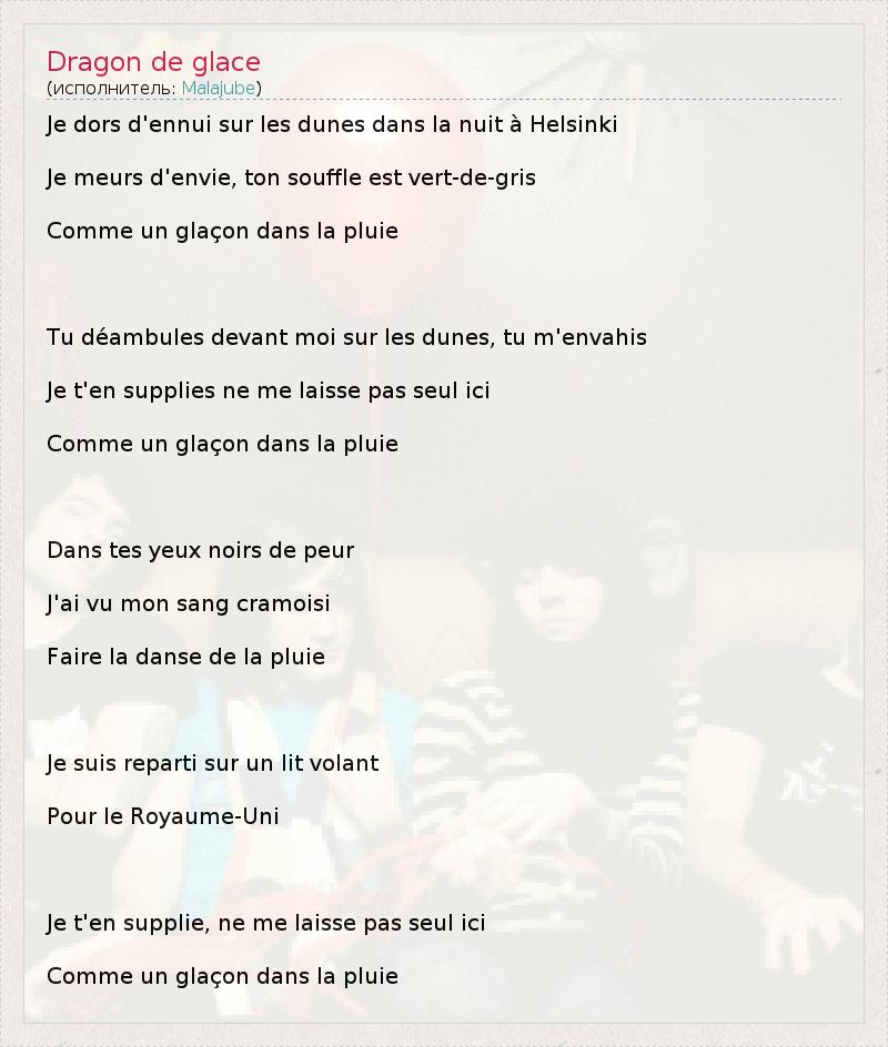 А как ты думаешь, о чем песня "Dragon de glace" ?