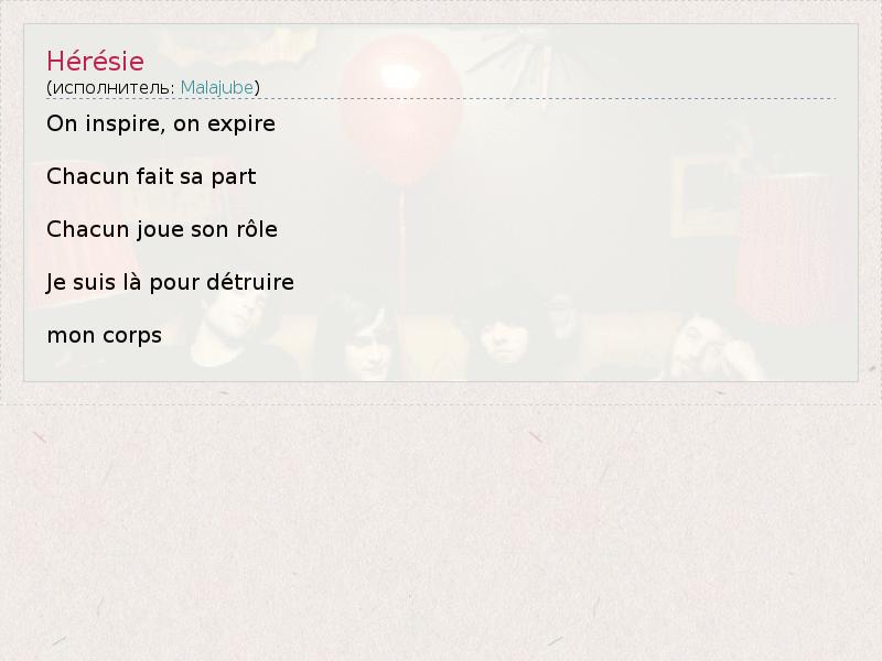 On inspire, on expire Chacun fait sa part Chacun joue son rôle Je suis là pour détruire mon corps