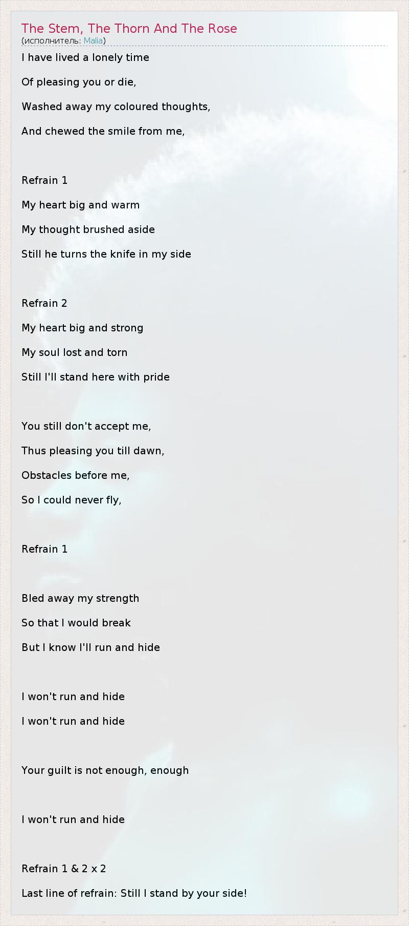 А как ты думаешь, о чем песня "The Stem, The Thorn And The Rose" ?