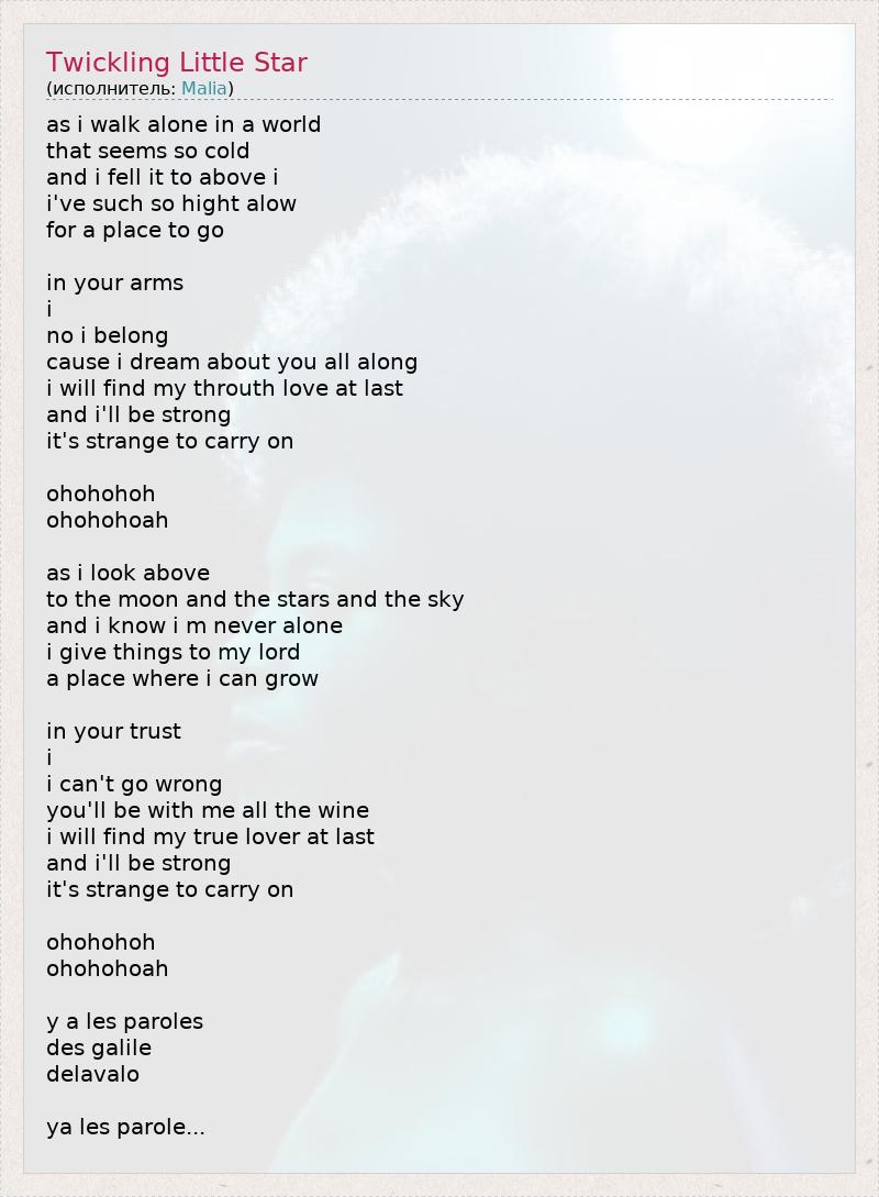 А как ты думаешь, о чем песня "Twickling Little Star" ?