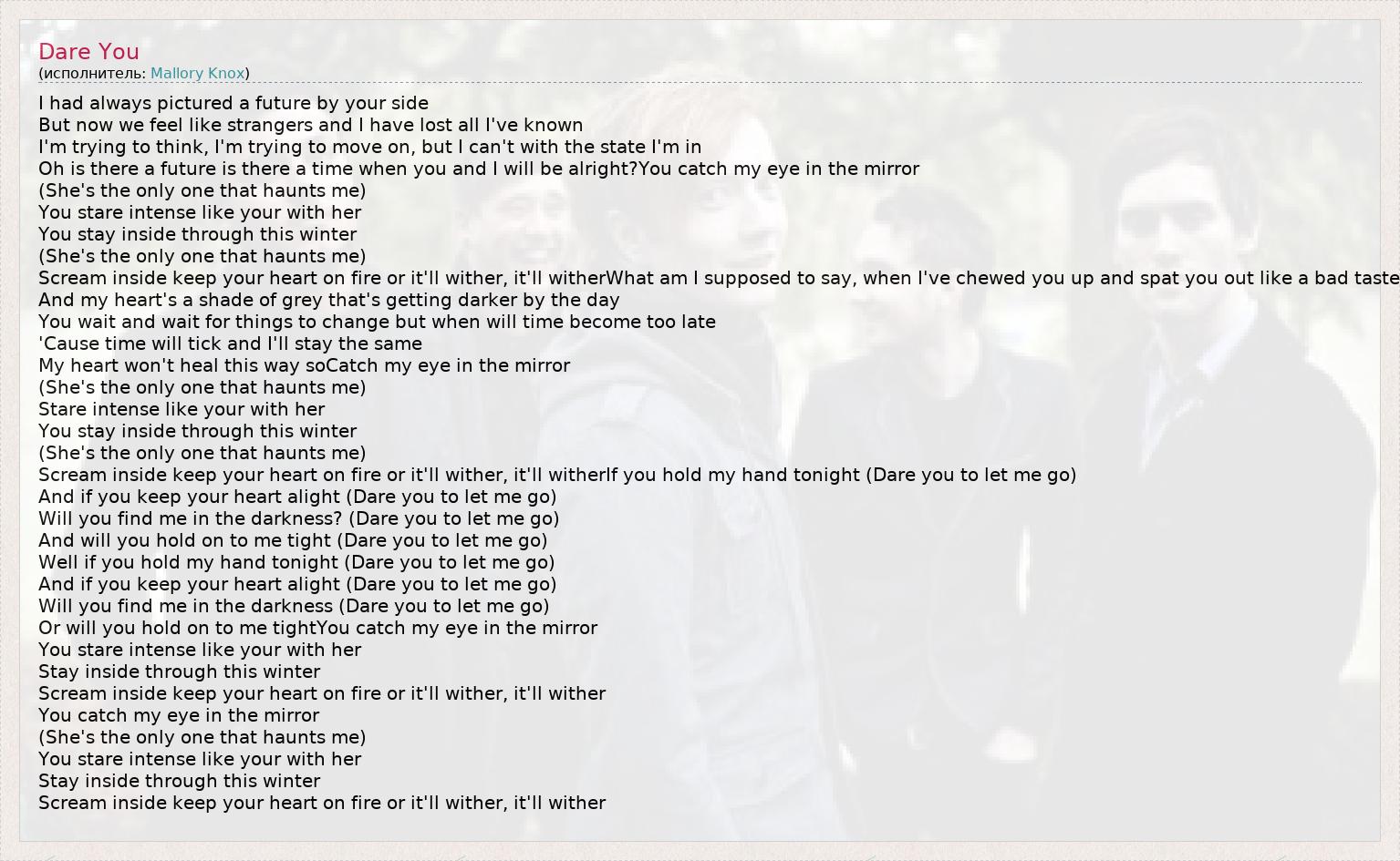Scream inside keep your heart on fire or it'll wither, it'll witherIf you hold my hand tonight (Dare you to let me go)