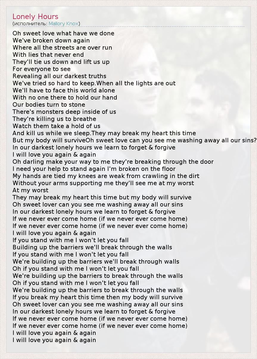А как ты думаешь, о чем песня "Lonely Hours" ?
