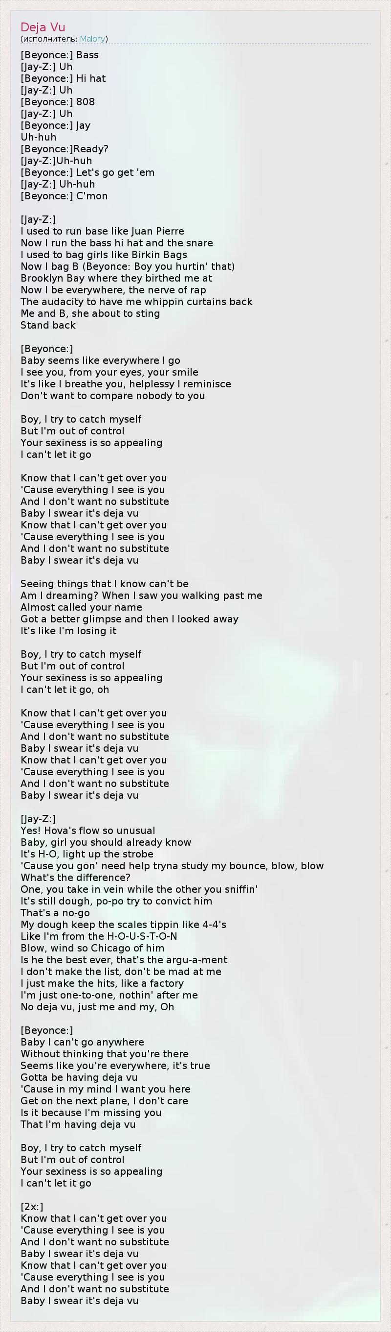 А как ты думаешь, о чем песня "Deja Vu" ?