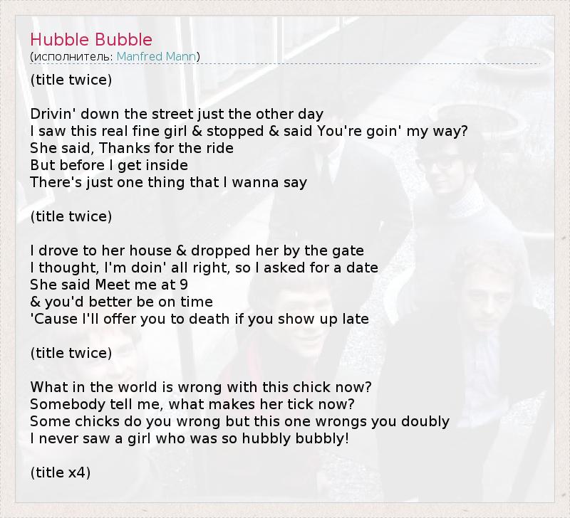 А как ты думаешь, о чем песня "Hubble Bubble" ?