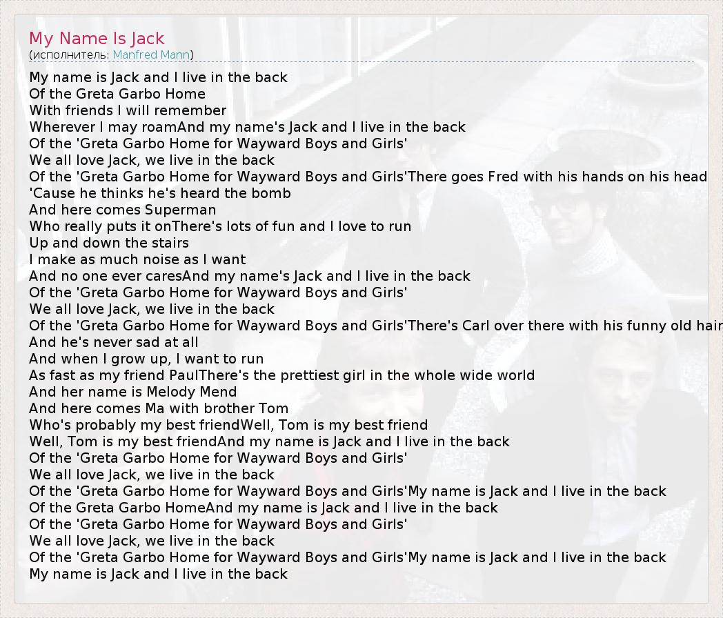 А как ты думаешь, о чем песня "My Name Is Jack" ?