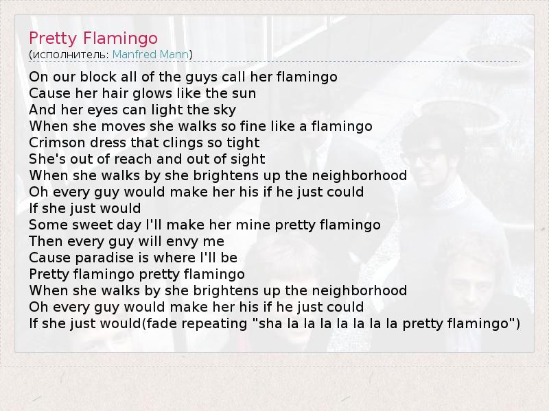 А как ты думаешь, о чем песня "Pretty Flamingo" ?