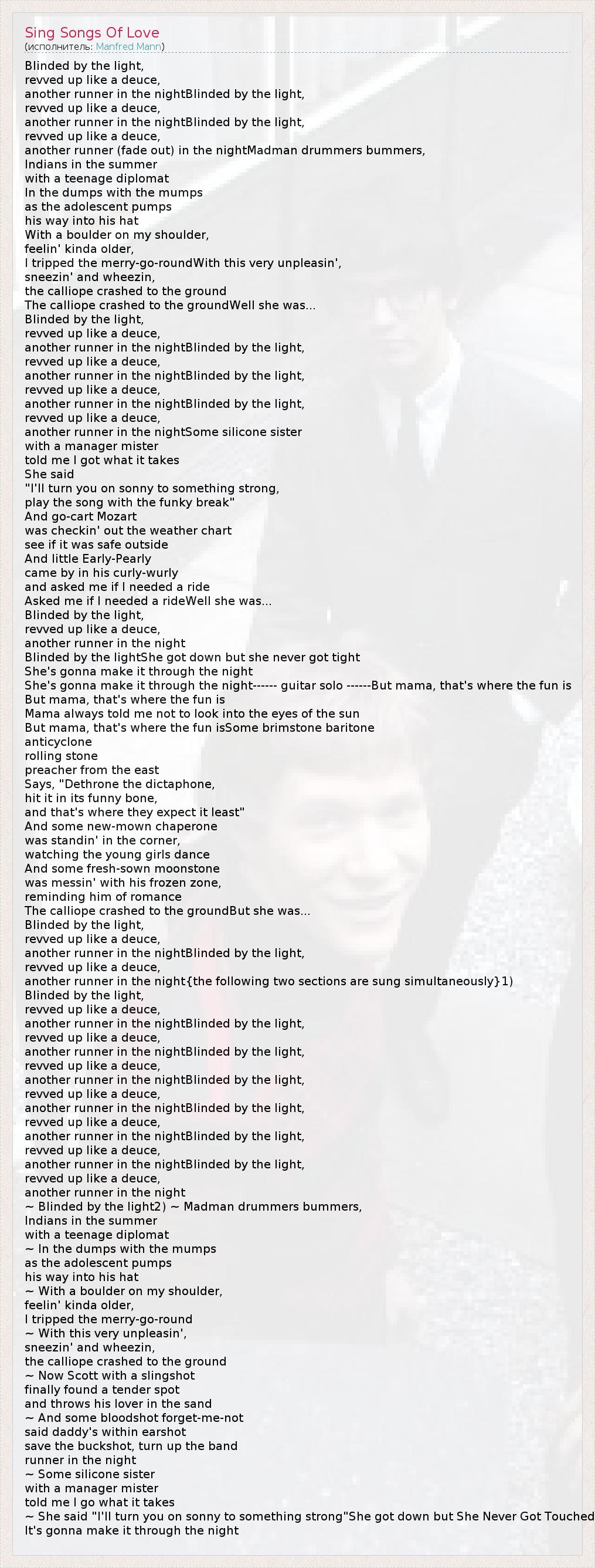 А как ты думаешь, о чем песня "Sing Songs Of Love" ?