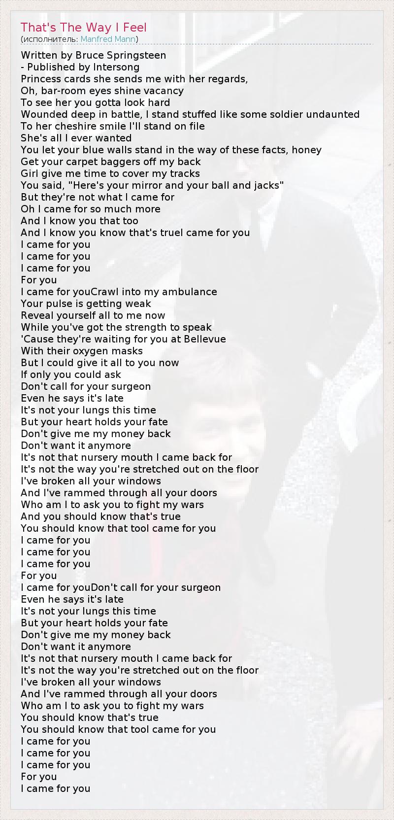 А как ты думаешь, о чем песня "That's The Way I Feel" ?