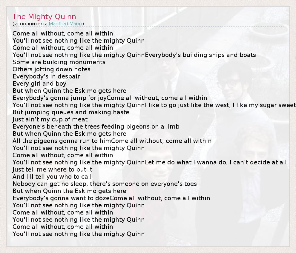 А как ты думаешь, о чем песня "The Mighty Quinn" ?