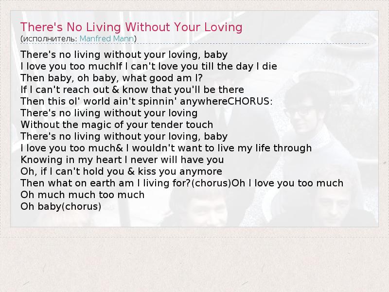 А как ты думаешь, о чем песня "There's No Living Without Your Loving" ?