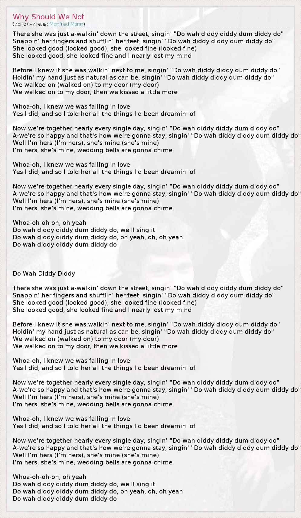 Do wah diddy diddy dum diddy do, oh yeah, oh, oh yeah