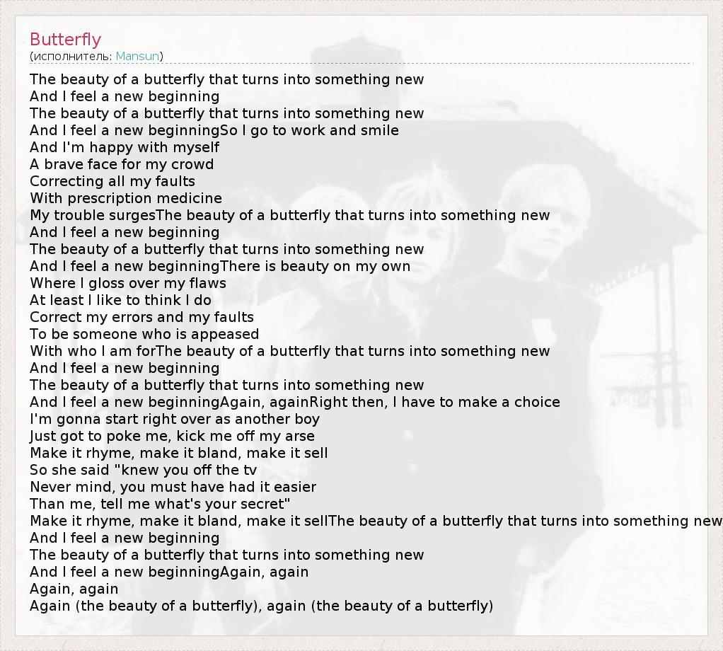 А как ты думаешь, о чем песня "Butterfly" ?