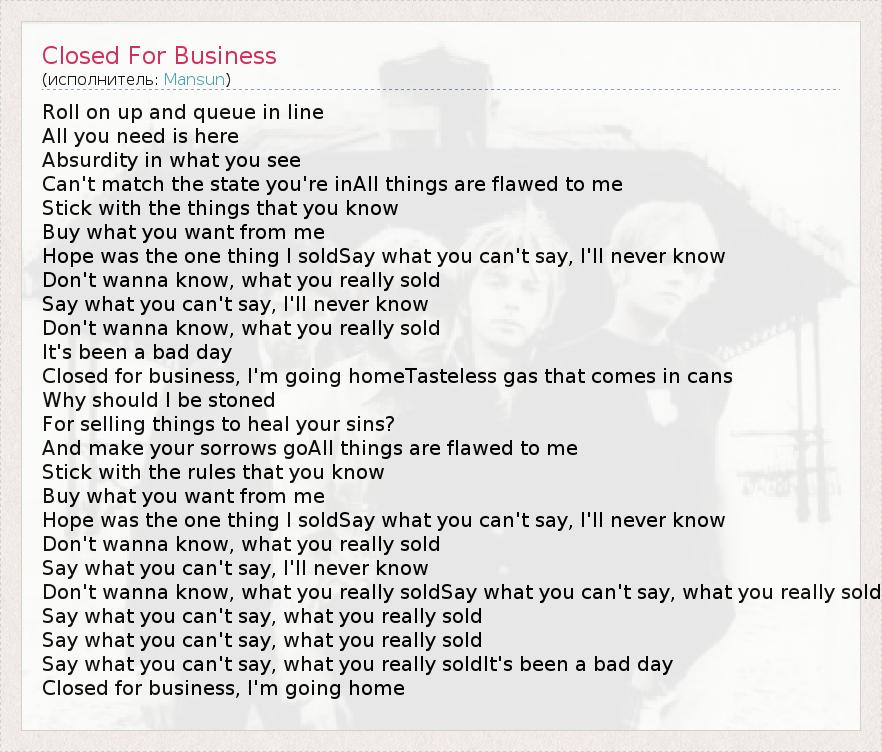 А как ты думаешь, о чем песня "Closed For Business" ?