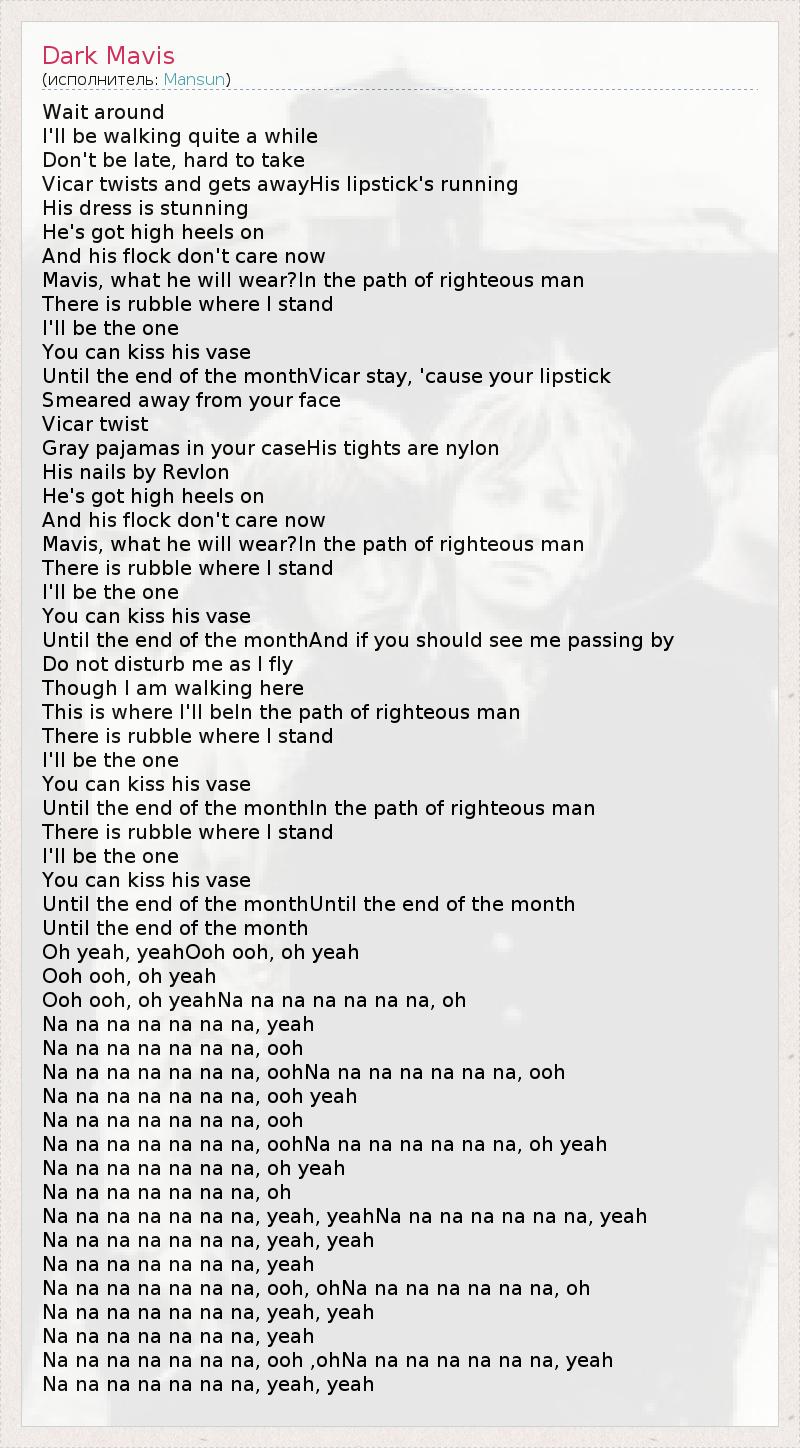 А как ты думаешь, о чем песня "Dark Mavis" ?