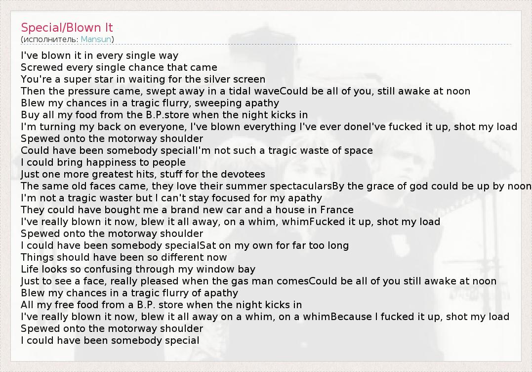А как ты думаешь, о чем песня "Special/Blown It" ?