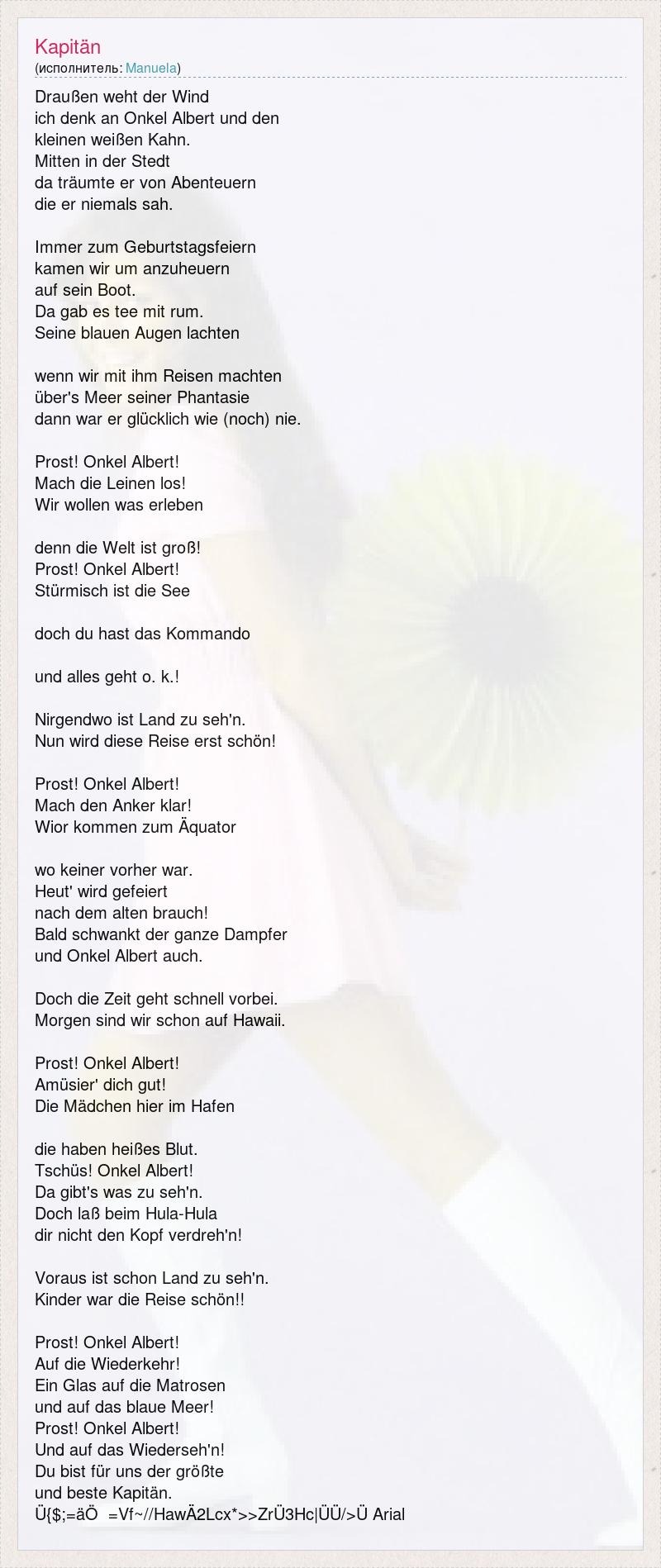 А как ты думаешь, о чем песня "Kapitän" ?