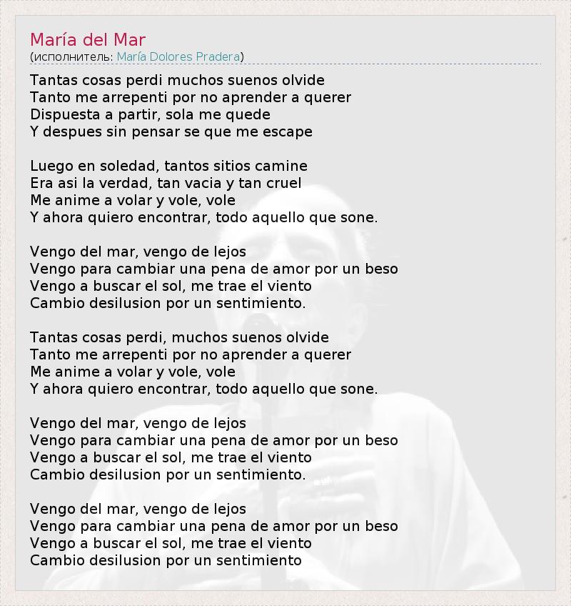 А как ты думаешь, о чем песня "María del Mar" ?