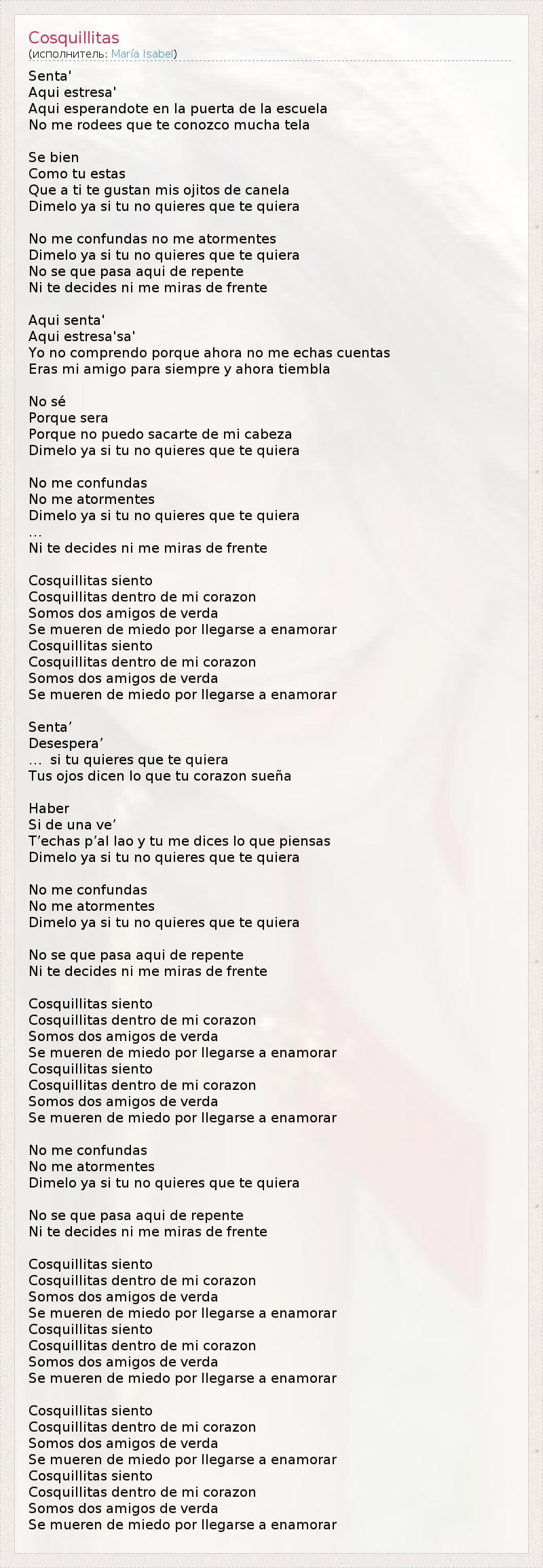 А как ты думаешь, о чем песня "Cosquillitas" ?
