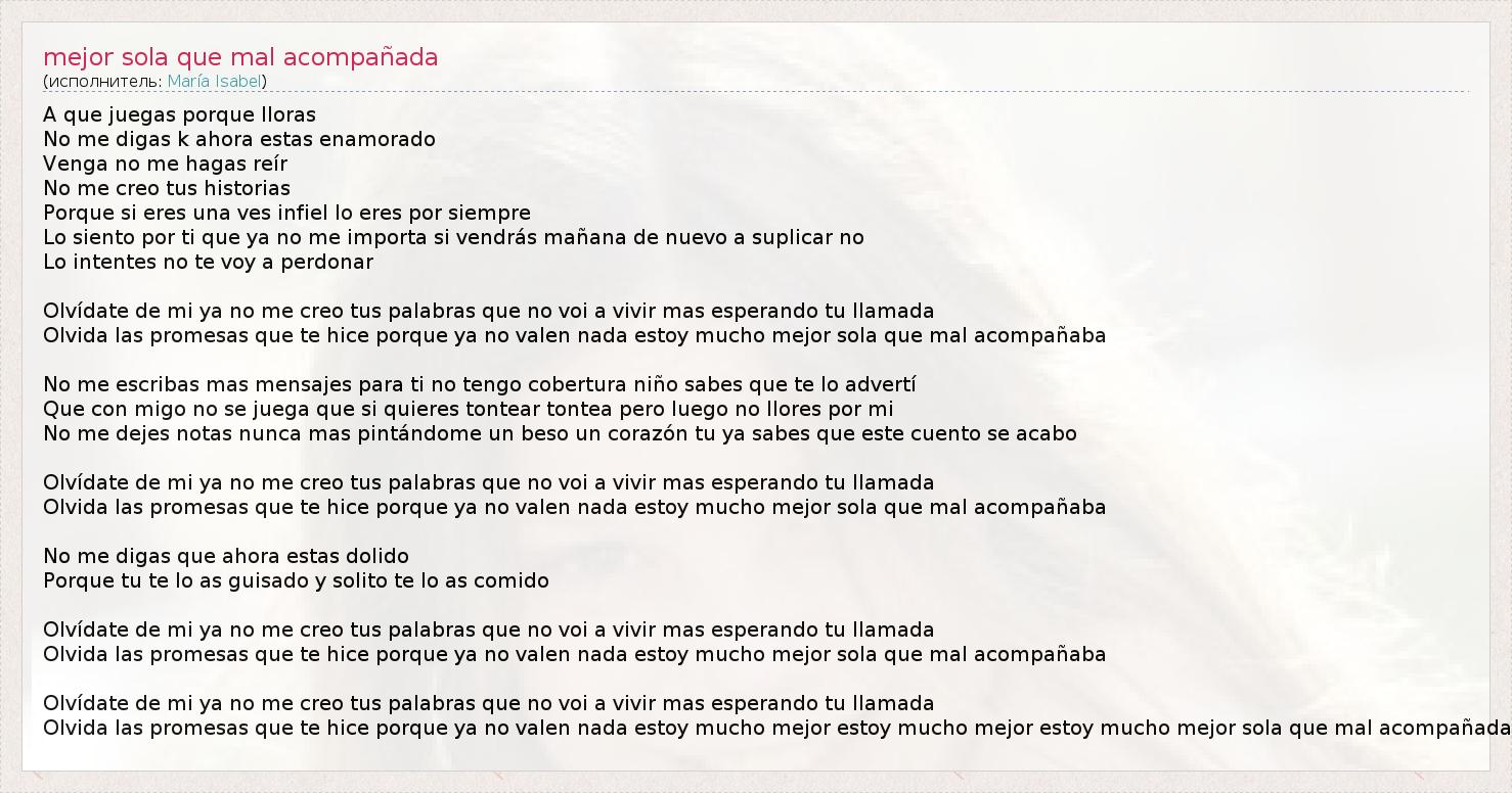ГлавнаяИсполнителиMaría Isabelmejor sola que mal acompañada