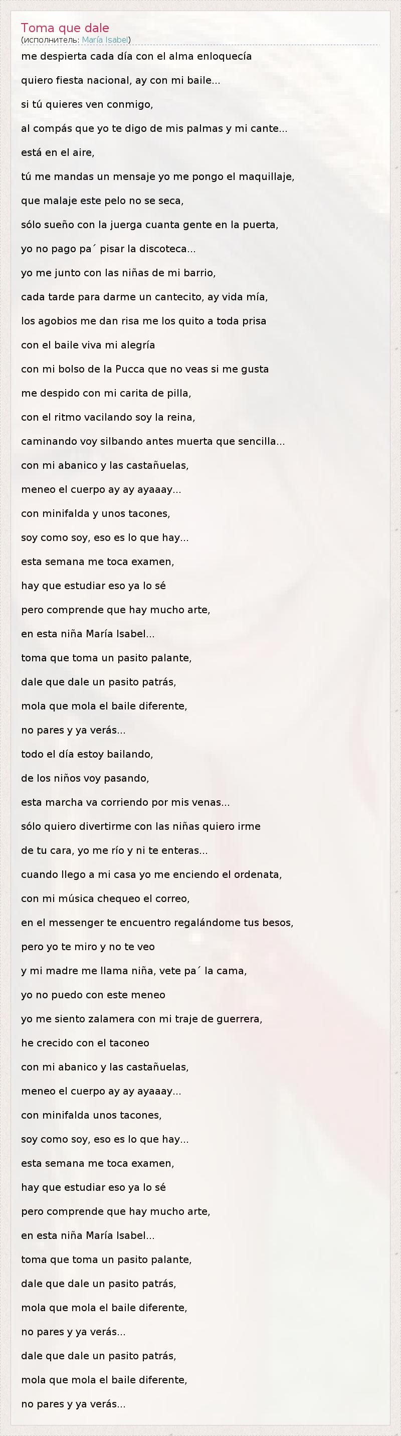 А как ты думаешь, о чем песня "Toma que dale" ?