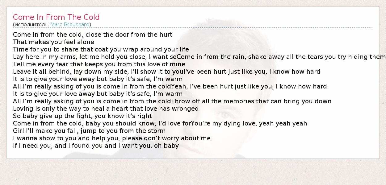 А как ты думаешь, о чем песня "Come In From The Cold" ?