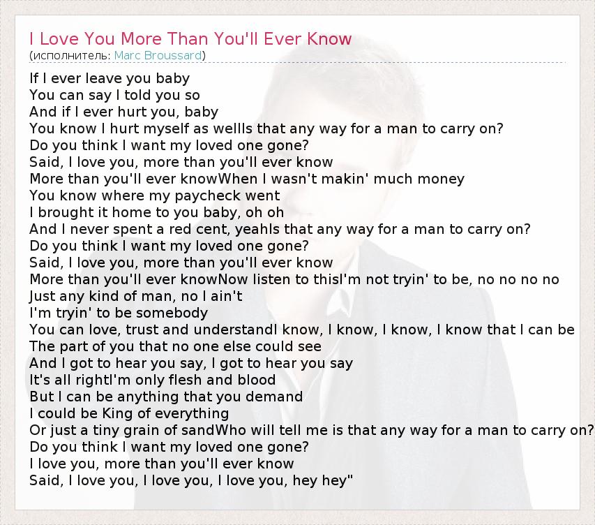 А как ты думаешь, о чем песня "I Love You More Than You'll Ever Know" ?