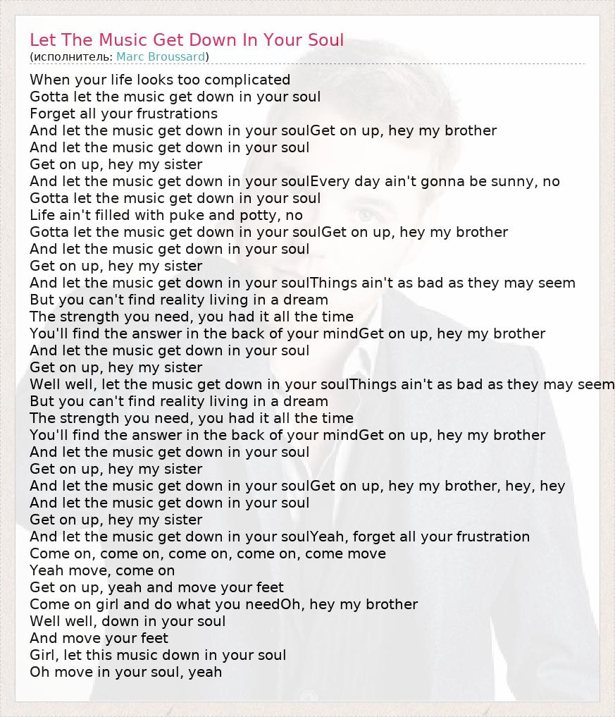 А как ты думаешь, о чем песня "Let The Music Get Down In Your Soul" ?