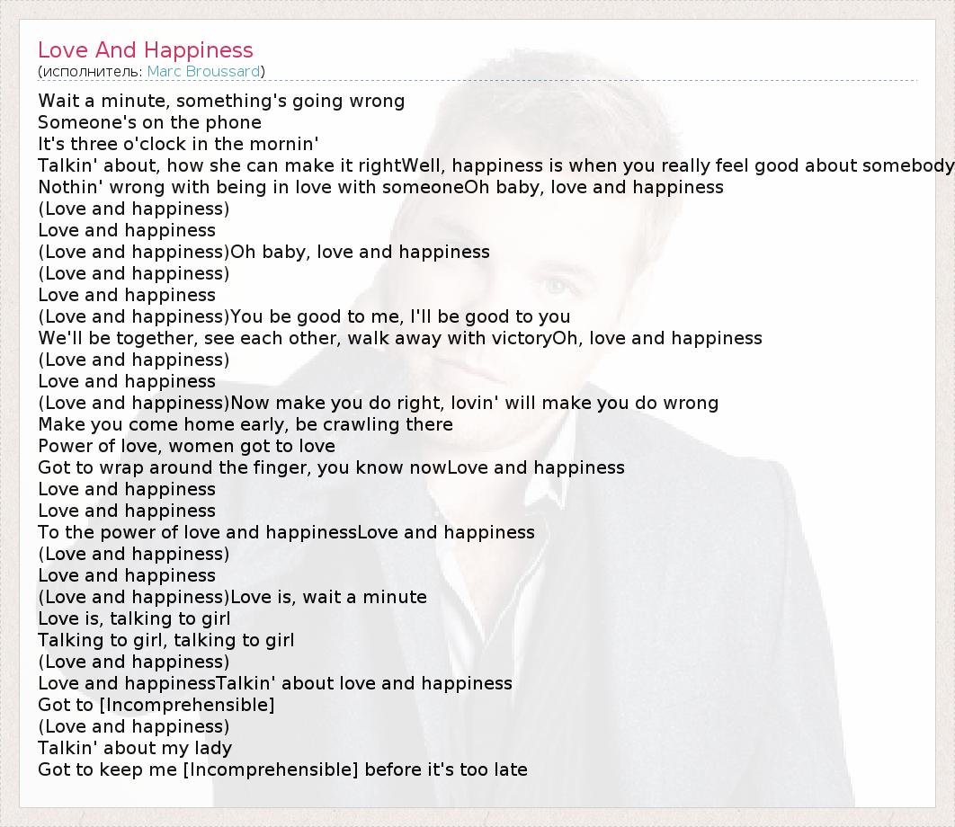 А как ты думаешь, о чем песня "Love And Happiness" ?