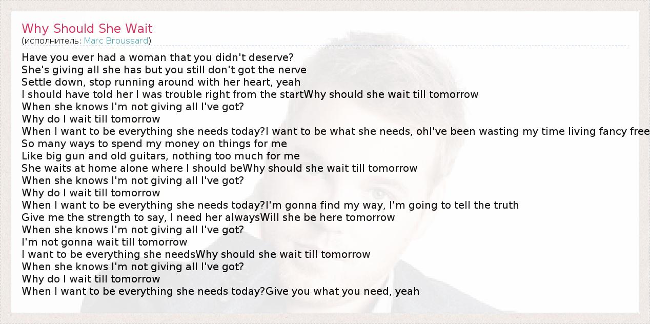 А как ты думаешь, о чем песня "Why Should She Wait" ?