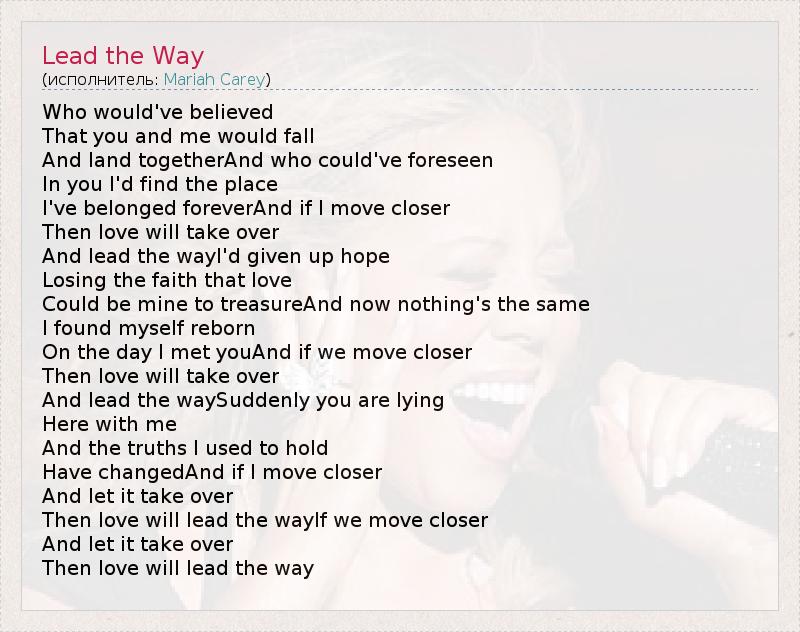 А как ты думаешь, о чем песня "Lead the Way" ?